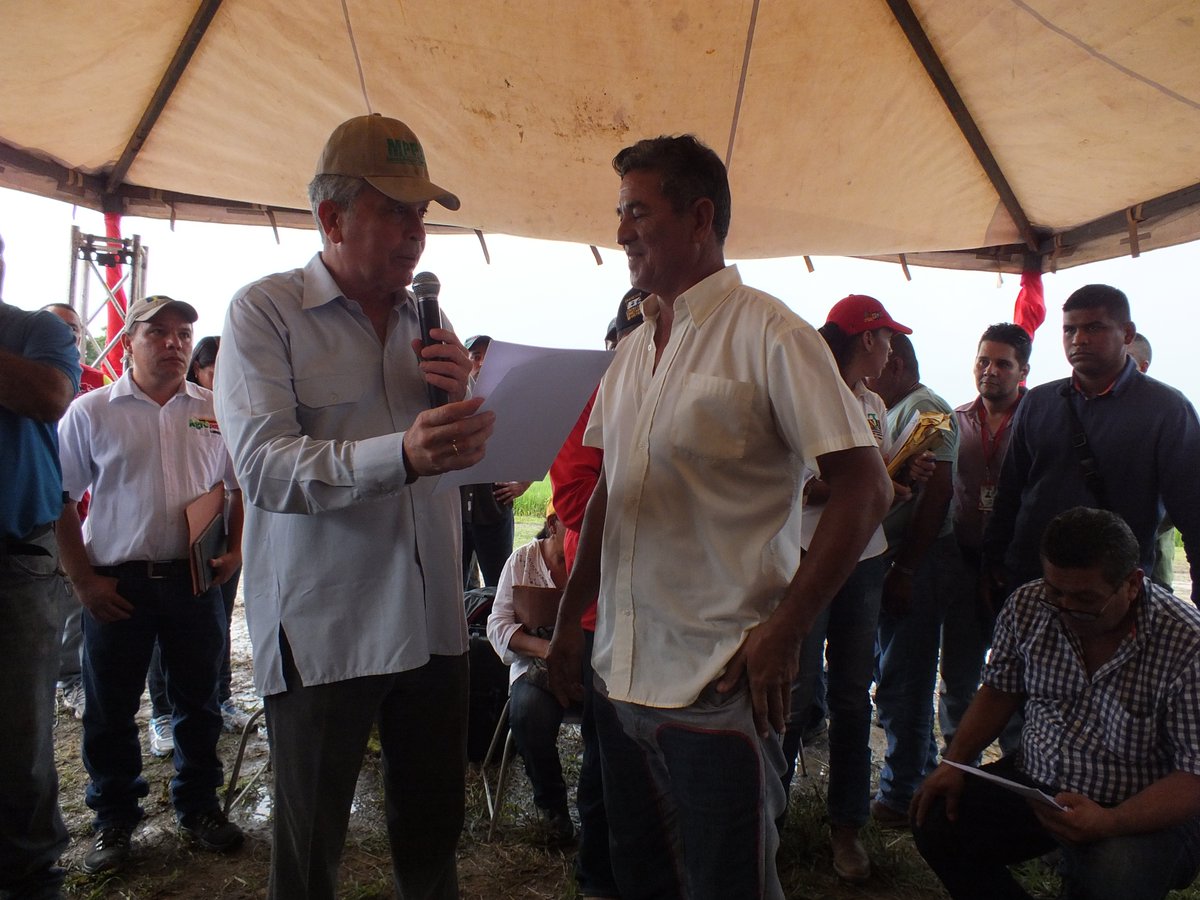 El titular la cartera agrícola señaló que esta visita permitió inspeccionar el avance de la siembra “pudimos apreciar en este previo gestionado por una Comuna y liderado por el Instituto Nacional de Desarrollo Rural (Inder), una condición del arroz extraordinaria que avizora buenos rendimientos”.